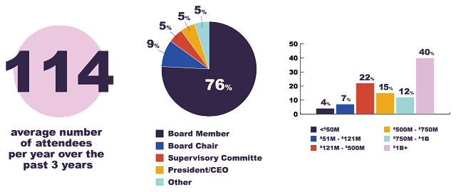Board of Directors Conference attendees immerse themselves in networking and insights focusing on the future of their credit unions. They learn how to develop forward-focused policies that improve the financial lives of members, discover new solutions to maximize their community impact, and achieve a best-in-class experience. Attendees will also discuss strategic planning, governance models, advocacy and economic forecast updates.