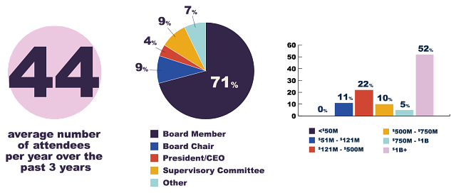 Credit union board members and other senior leaders gather to share insights and engage in peer-to-peer dialogue about challenges and opportunities in the current credit union environment. Position your organization as a solution to those challenges when you sponsor this event.